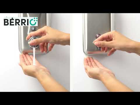 Dispensador de sabonete líquido em inox Bérrio de alta qualidade e resistência, depósito de 1 litro, fabricado em aço inox 304 S.S 0,70 mm de espessura. Acabamento escovado.