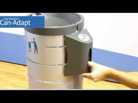 Dispensador de sacos para dejetos caninos Can-Adapt adqueado para espaços públicos para ser instalado na maioria das superfícies verticais (paredes, caixotes, postes, …). Fabricado em chapas de aço laminadas a frio de 1'5 e 3 mm, galvanizadas. Inclui um primer rico em zinco.